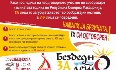 Летото е период кога се зголемува бројот на загинати и повредени лицa во сообраќајни незгоди. Како последица на неодговорното учество во сообраќајот, изминатата година во земјава...