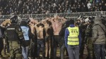 Тепачката, која траела 10-ина минути, била спречена од страна на полицијата, која од стадионот отстранила неколкумина навивачи.