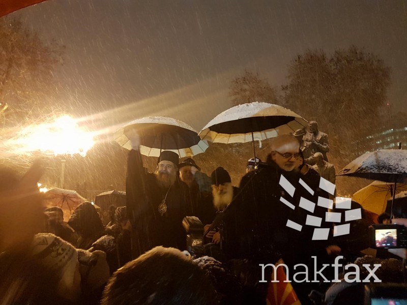 Митрополитот преспанско-пелагониски и администратор на Австралиско-новозеландската епархија, г. Петар, кој вечерва учествува на протестот за одбрана на името Македонија, порача дека само Господ може да ја спаси Македонија.