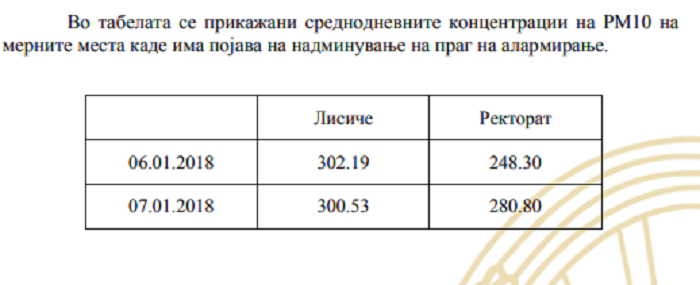Мерките се активираат по добиените информации дека квалитетот на воздухот последователно два дена е надминат над дозволеното, односно концентрацијата на ПМ10 честичките била над 200 на метар кубен на мерните станици во Град Скопје односно мерните станици Лисиче и Ректорат.