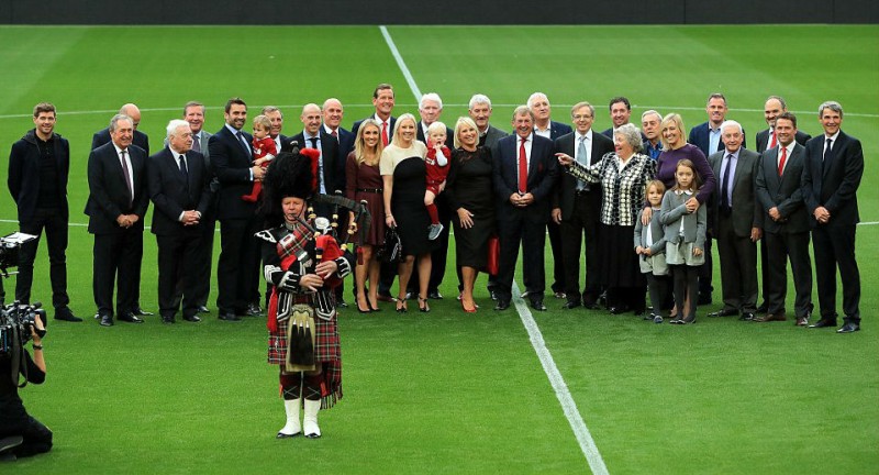 На церемонијата присуствуваа поранешниот менаџер Жерар Улие, поранешните играчи Јан Сент Џон, Роби Фаулер, Алан Хансен, Фил Томпсон, Мајкл Овен, Џејми Карагер и Стивен Џерард, но можеби најзабележително беше присуството на стариот ривал, sер Алекс Фергусон, како и уште еден великан на Манчестер јунајтед, sер Боби Чарлтон. Прославата започна, нормално, со шкотски гајди.