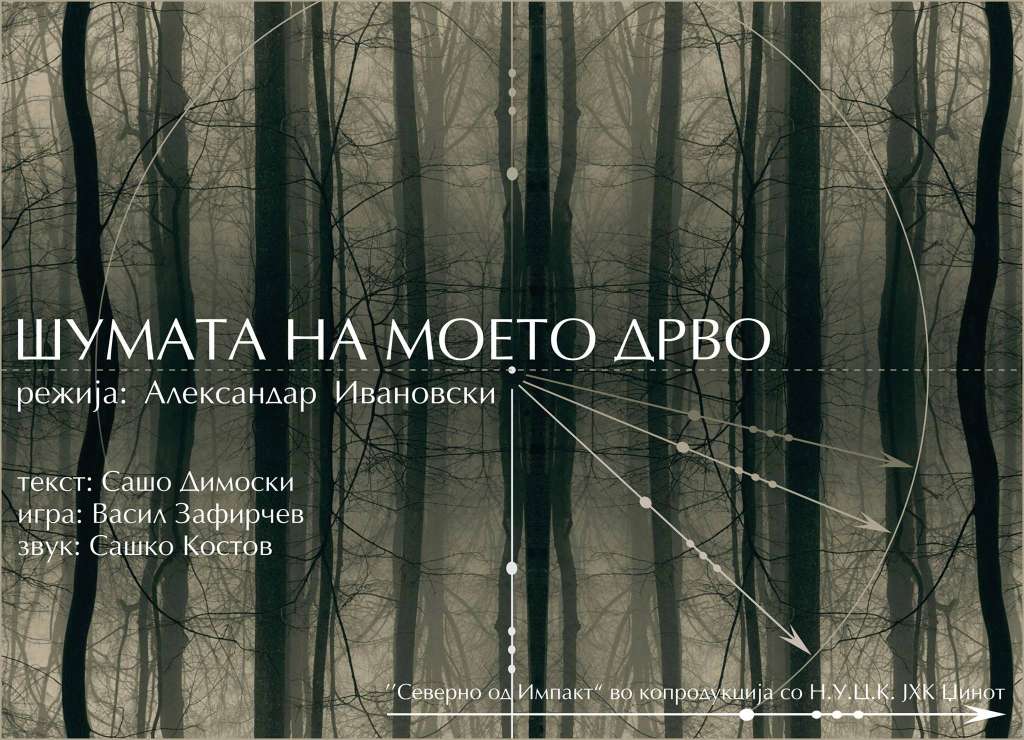 Утревечер (четврток, 27 април), на Малата сцена на Театар „Џинот“ Велес, со почеток во 20 часот премиерно ќе биде изведен моноперформансот на Васил Зафирчев „Шумата на моето дрво“, во режија на Александар Ивановски, според текст на Сашо Димоски и на авторска музика во живо на Сашко Костов, како копродукција помеѓу „Северно од Импакт“ и Театар „Џинот“ Велес.