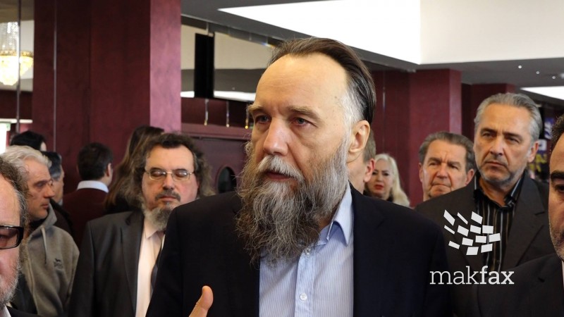 Присутните на панел диксусијата „Република Македонија во стратешки сојуз со Русија и членство во Евроазиската економска унија“ во организација на партијата на Јанко Бачев, Единствена Македонија, со извици „Русија, Русија“, го пречекаа рускиот филозоф и ултранационалист Александар Дугин.