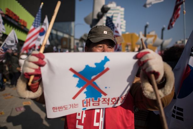 Јужнокорејските демонстранти носеа транспаренти со кои го повикуваа американскиот претседател Доналд Трамп да го нападне нивниот сосед.