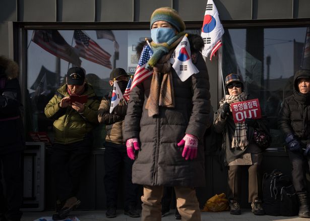 На протестот се палеа севернокорејски знамиња и фотографии на лидерот на Пјонгјанг, Ким Џонг-ун, непосредно пред почетокот на церемонијата.