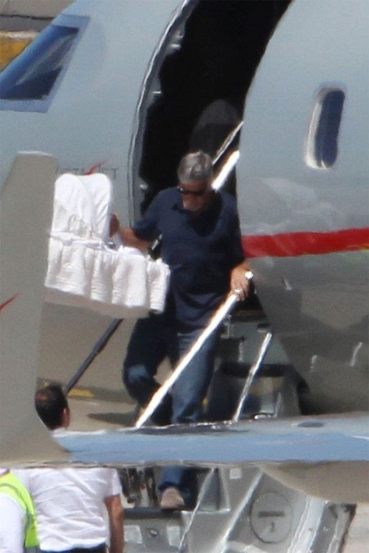 Познатата брачна двојка Џорџ и Амел Клуни пристигнаа во Милано. Двојката е снимана како се симнува од својот приватен авион, а фоторепортерите успеаја да ги сликаат заедно со нивните деца.
