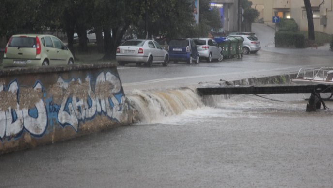 Најпогоден од обилните дождови е градот Задар каде што досега наврна повеќе од 200 литри дожд на квадратен метар. Во овој град непрекинато врне дожд седум часа, а поплавени се болницата и еден трговски центар, голем број куќи и деловни простории. Надојдената вода предизвика прекин на струјата и на комуникациските врски, а водата од чешмите не е за пиење.