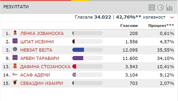Кандидатот за градоначалник на Гостивар од „Алијанса за Албанците“, Арбен Таравари, губи од неговиот противкандидат од ДУИ, Невзат Бејта.