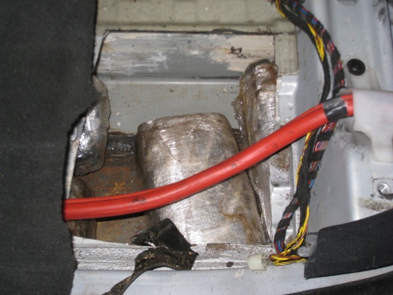 Под предните седишта на возилото бил откриен специјално направен бункер по целата должина на левата и десната страна од подот. Во левиот дел од бункерот биле пронајдени 12 пакувања со марихуана, а во десниот уште 13.