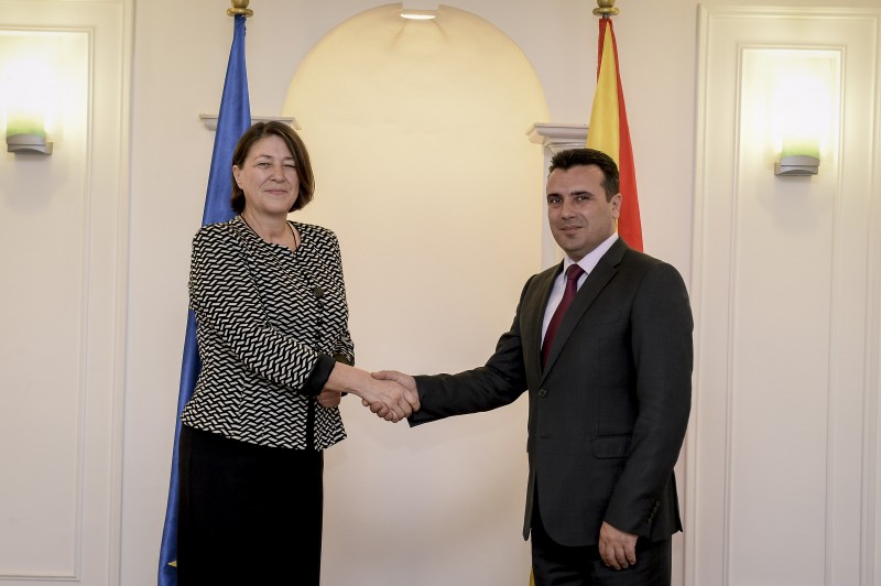 Премиерот Зоран Заев, придружуван од вицепремиерот за европски прашања, Бујар Османи, и министрите за надворешни работи, Никола Димитров, и за транспорт и врски, Горан Сугарески, попладнево се сретна со комесарката за транспорт на Европската комисија, Виолета Булц, придружувана од амбасадорот на ЕУ во Македонија, Самуел Жбогар.