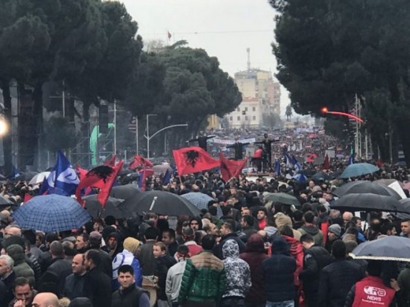 Во Тирана дојде до судир на полицијата со учесниците на протестот што имаа намера да влезат во Собранието. Албанската телевизија „Њуз 24“ инфомира дека полицијата употребува и солзавец, а во судирот има повредени полицајци и цивили.
