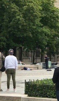 Човекот, чие име се чува во тајност, бил застрелан од полицијата откако претходно се обидел со чекан да му ја скрши главата на полицаецот кој патролирал со двајца колеги на плоштадот пред популарната туристичка атракција, пишува „Дејли мејл”.