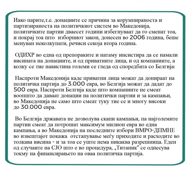 Во Белгија компаниите не смеат да финансираат партии, во Македонија се главни финансиери