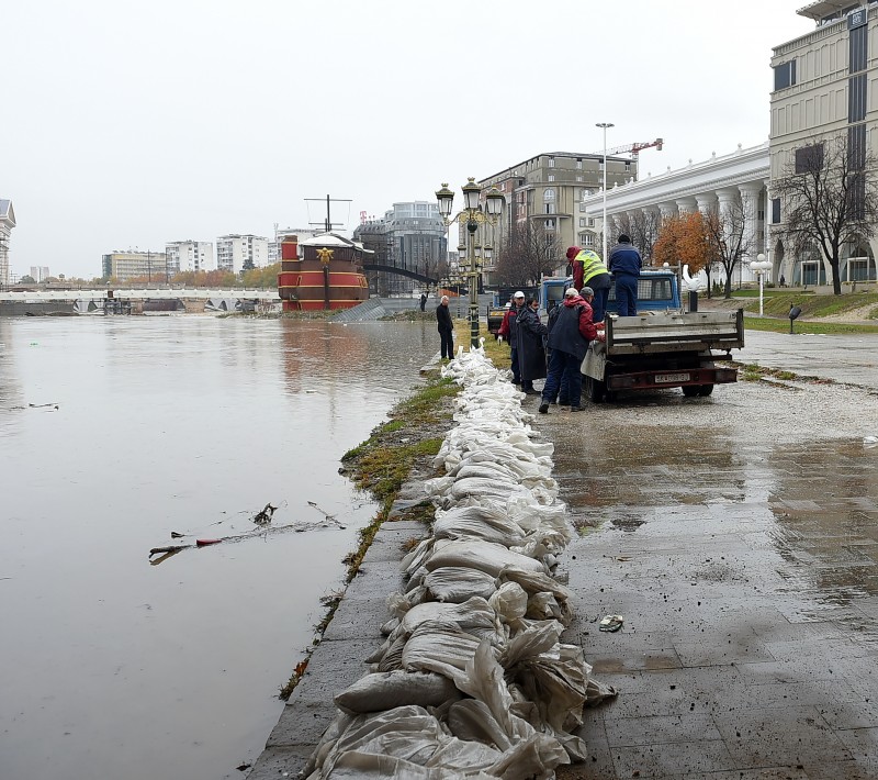 Исто така, тој нагласи дека веќе се подготвуваат 10.000 вреќи со песок, кои набргу ќе почнат да се поставуваат на критичните точки: на потегот од скејт-паркот до мостот „Слобода“ кај „Холидеј ин“ и кај ПИОМ зашто во текот на ноќта се очекуваат уште поинтензивни врнежи.