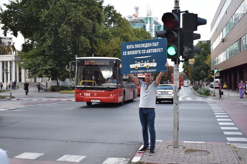 Герила акцијата со едукативни пораки за одржлив транспорт денеска ќе се реализира на раскрсницата на булеварот Кочо Рацин со улицата 11 Октомври.