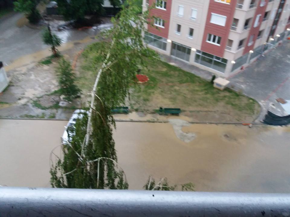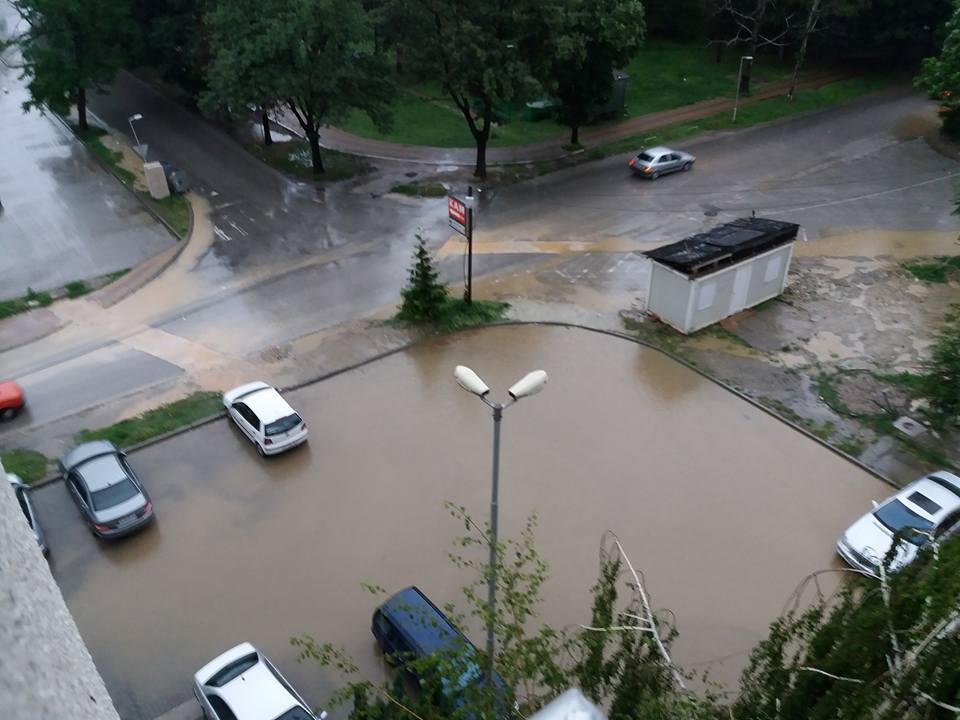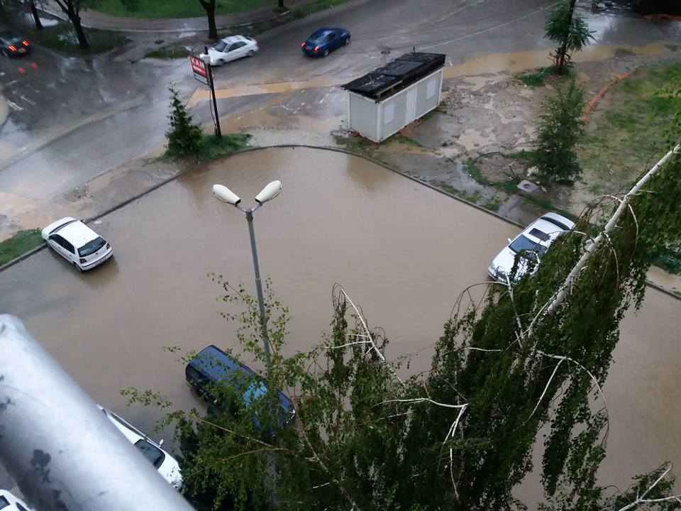 Попладневниот дожд, кој го зафати Скопје, поплави неколку од улиците во Аеродром, посебно спроти Поликлиниката.