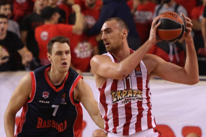 Олимпијакос, иако во некомплетен состав, ја оправда фаворитската улога против Басконија. Мечот се одигра на Крит во арената „Хераклион“, а Олимпијакос славеше со 75:64 (16:12, 25:21, 19:16, 15:15).