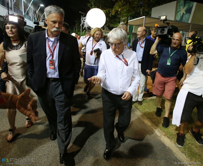 „Шефот на Ф1, Кери Чејс, прати порака на една од девојките во мојата канцеларија дека немаат толку канцеларии на патеката и дека тоа зависи од промотерите. Сега тие се тројца – Кери, Шон Бречис и Рос Браун, така што користат три канцеларии. Тоа во основа беше порака да не доаѓам на трките. Ќе беше полесно да ми кажат така, но и вака ги послушав. Малку е чудно да не си вклучен во Формула 1, но се навикнав“, објаснува Еклстоун.