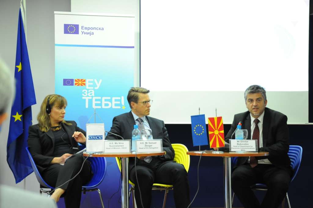 Двајцата европски претставници се обратија на панел дискусијата во ЕУ инфо центарот по повод 3-ти мај Светскиот ден на слободата на медиумите. На дискусијата се обрати и Зоран Трајчески, директор на АВМУ.крај/мф/Д.М