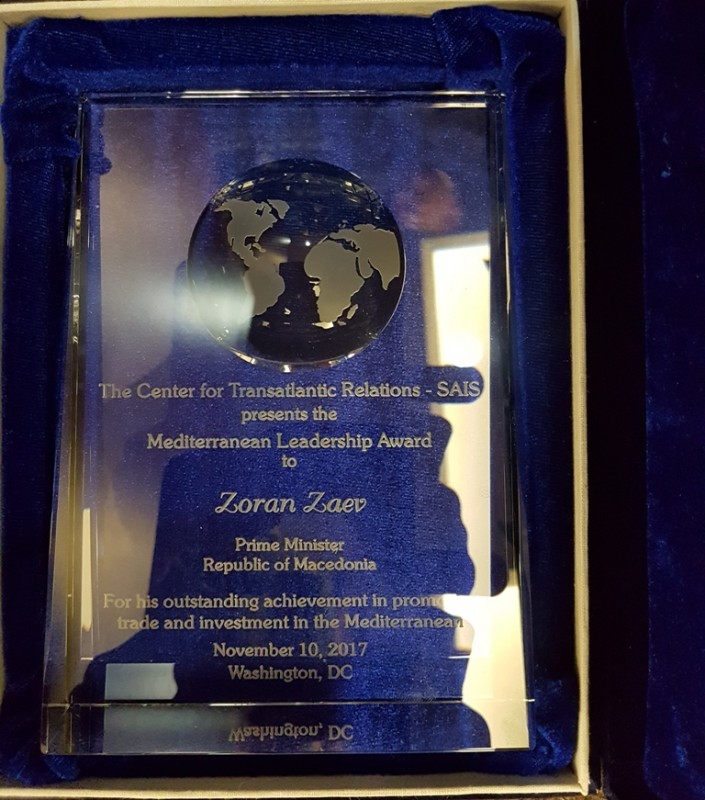 Заменик-претседателот на Владата задолжен за економски прашања, д-р Кочо Анѓушев, на завршната свеченост на Трансатлантскиот економски форум во Вашингтон, во име на премиерот Зоран Заев ја прими наградата „Лидери на Медитеранот“, која се доделува за особен придонес за поттикнувањето на трговијата и инвестициите во Медитеранот.