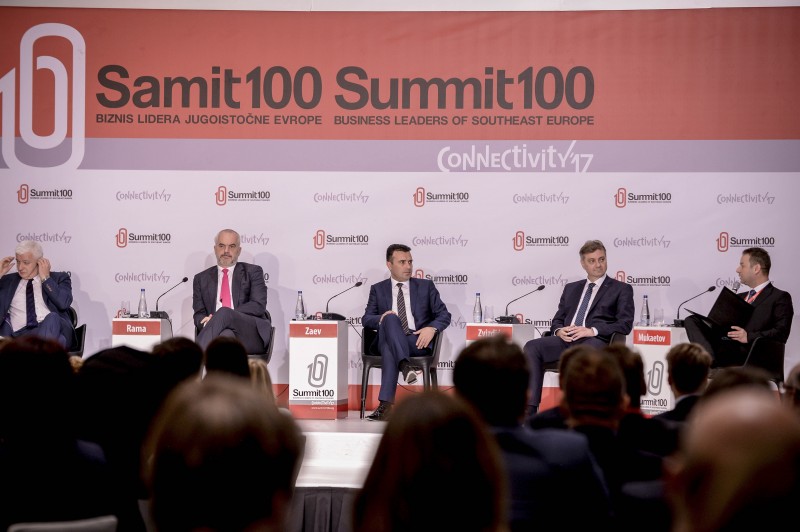 Премиерот Зоран Заев, заедно со премиерите на Албанија и Црна Гора, Еди Рама и Душко Марковиќ, и со претседавачот на Советот на министри на БиХ, Денис Звиздиќ, денеска учествуваше на панел-дебата на манифестацијата „Самит 100“, собир на најголемите и највлијателни претставници на бизнис-заедницата на земјите од Западен Балкан. Во своето обраќање на дебатата на тема „Дали регионот може да се натпреварува на глобалниот пазар?“, премиерот Заев истакна:
