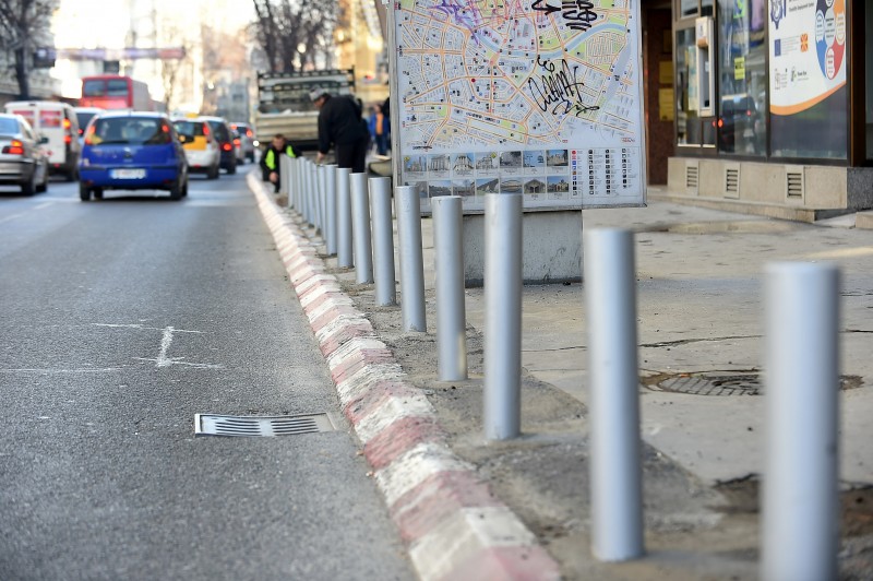 Заштитни столпчиња во Центар за да се спречи паркирањето на тротоарите