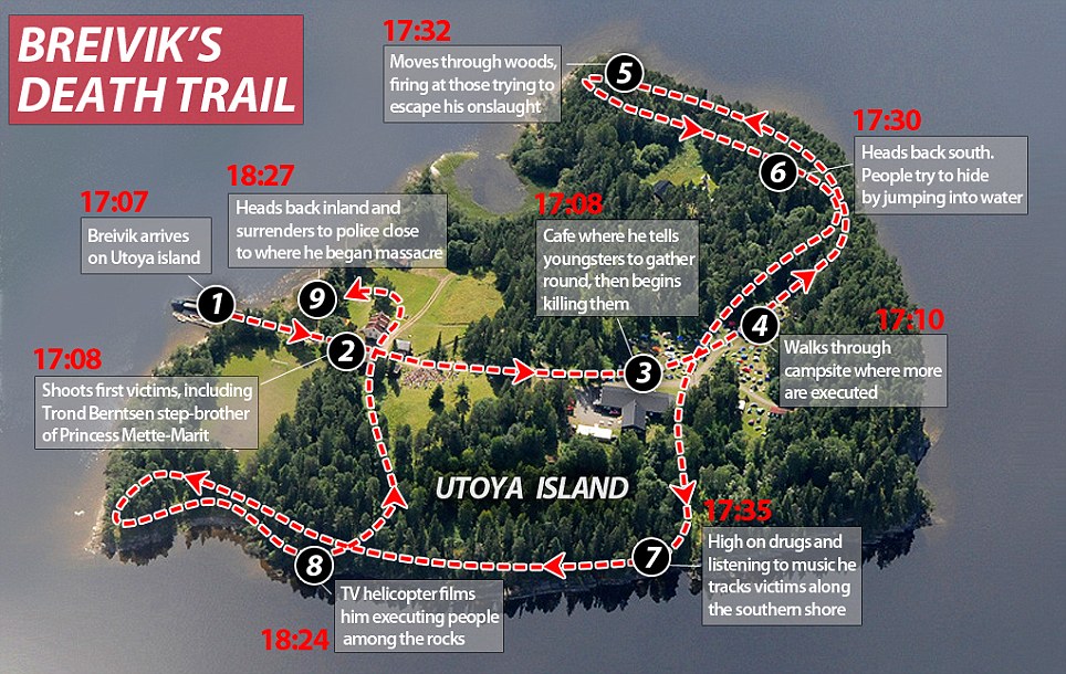 Во 2011 година Брејвик, облечен како полицаец, уби 69 луѓе, од кои повеќето тинејџери во младински камп на Лабуристичката партија на островот Утоја. Претходно тој уби осум луѓе во бомбашки напад пред владината зграда во Осло.