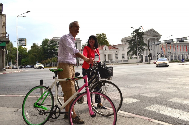 Министеркaта без ресор задолжена за странски инвестиции, Зорица Апостолска, и aмбасадорот на Холандија во земјата, Ваутер Пломп, често одат на работа со велосипед. Денес решија тоа да го направат заедно со цел да ја одбележат Европската недела на мобилноста, но и да ги поканат сите граѓани да го следат овој пример.