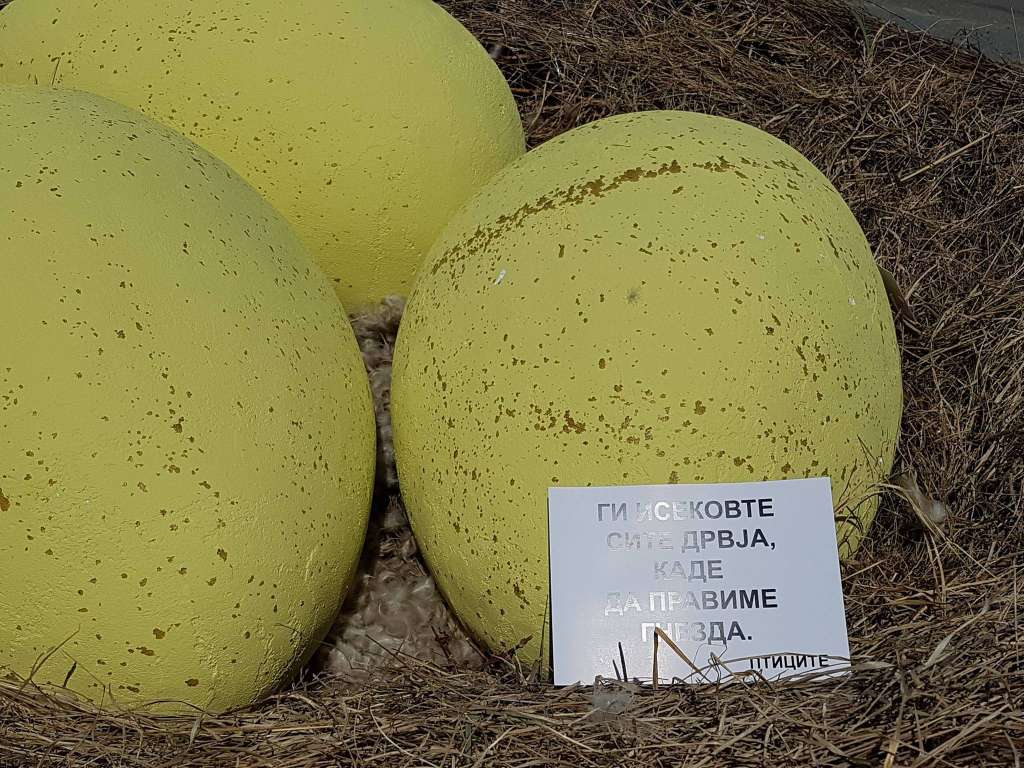 Новата уметничка акција насловена како „Поддршка за птиците во Скопје“ има за цел во овие предвелигденски денови да алармира на се поголемиот број исечени дрвја во градот.