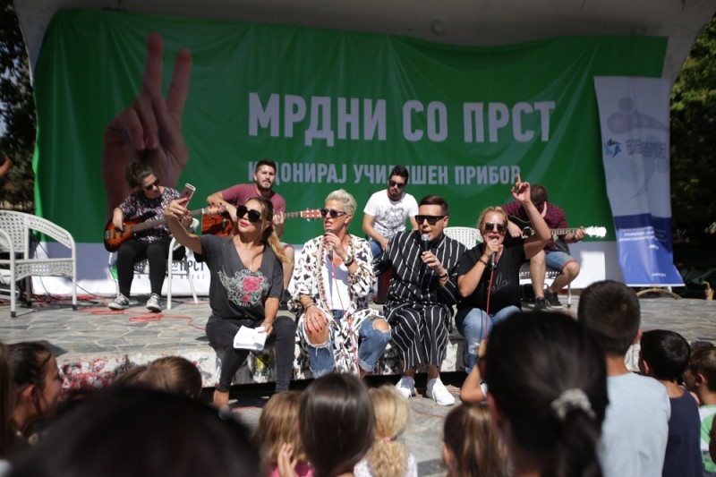 Во неделата, 10 септември, Градскиот парк беше збирно место за забава, многу детски насмевки, убаво расположение, дружење и најважно од сè – хуманост на дело. Повеќе стотици граѓани и познати македонски естрадни имиња го искористија убавото сончево попладне и активно мрдаа со прст во рамките на хуманитарниот хепенинг „Мрдни со прст – Донирај училиштен прибор“.