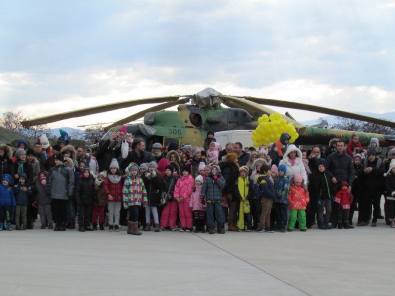 Церемонијата на веќе препознатливото пристигнување на „Дедо Мраз“ со транспортен воен хеликоптер МИ-8 и поделба на новогодишни пакетчиња, која традиционално се реализира повеќе од 20 години на воениот дел од аеродромот ,,Александар Велики“ во касарната „Страшо Пинџур“ во Петровец, и оваа година предизвика огромен интерес кај најмладите.