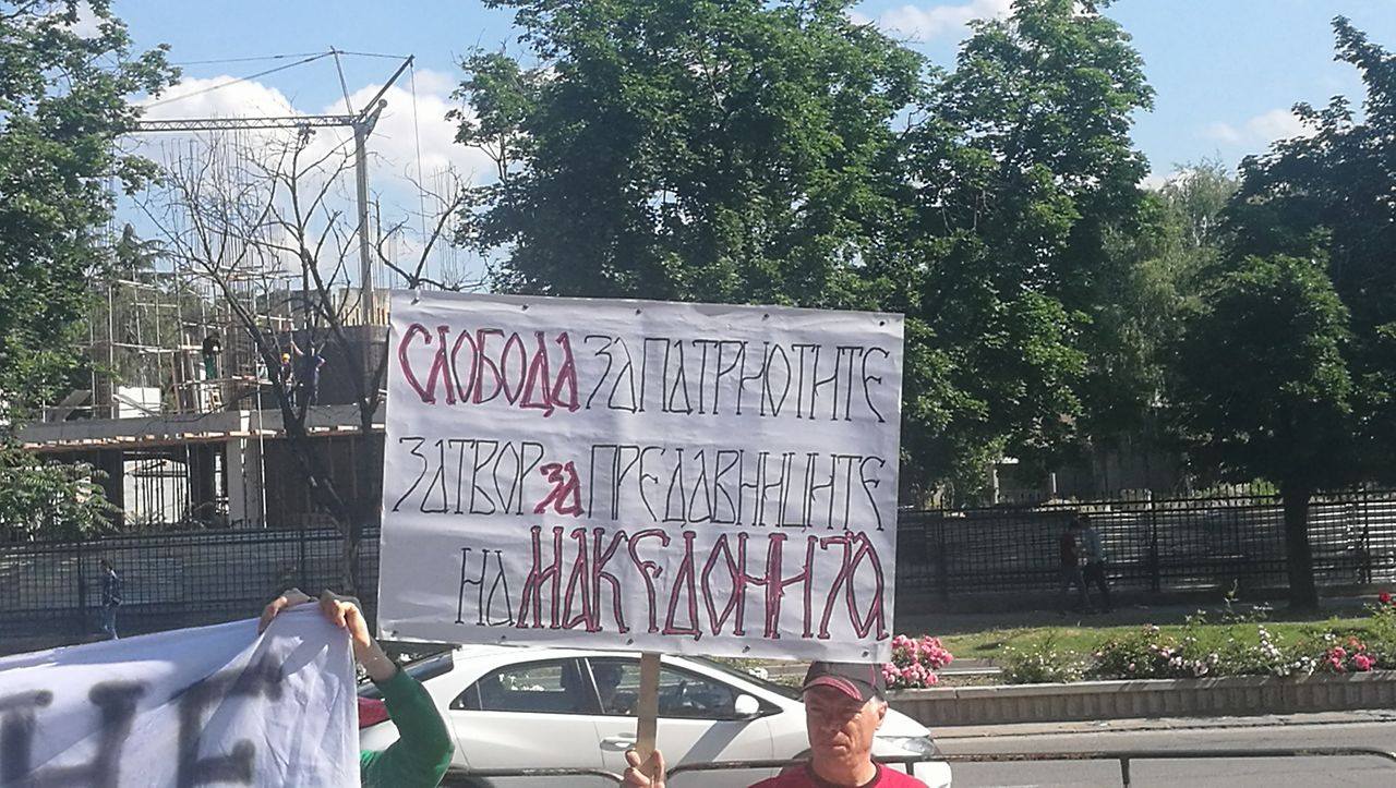 Тие ностат транспаренти на кои пишува „Верував во се’, но не дека моите ќе ми судат за Македонија“ и „Слобода за патриотите, затвор за предавниците на Македонија“.