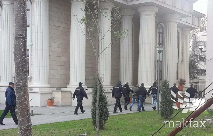 Како што јавува нашиот репортер, на новинарите и снимателите не им е дозволено да се приближат до влезот на судот. Не им е дозволено да се приближат ниту до задниот влез од каде што се внесуваат и изнесуваат приведените.