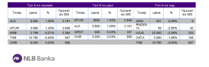 На последниот трговски ден оваа недела вкупниот промет на берзата изнесуваше 10.9 милиони денари, а истргувани беа 5.282 лотови преку 59 трансакции. На листата на “милионерите” се запишаа три хартии од вредност кои остварија промет од над милион денари.