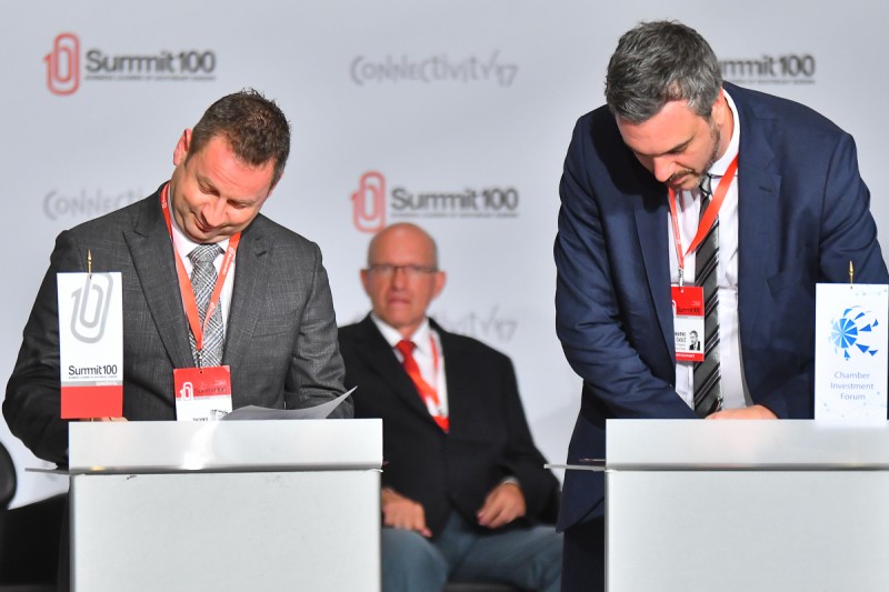 Вчера во Скопје во рамки на 6-годишнината од Самит 100, беше потпишанмеморандум за соработка помеѓу регионалната платформа Самит 100 и Коморскиот инвестициски форум на шест земји од Западен Балкан (WB6 CIF) – тело за регионална соработка на коморите од Македонија, Србија, Албанија, Косово, Босна и Херцеговина и Црна Гора.