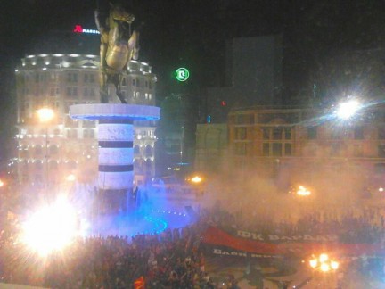 Низ скопските улици одекнуваат сирени од автомобили и се виорат македонските знамиња.