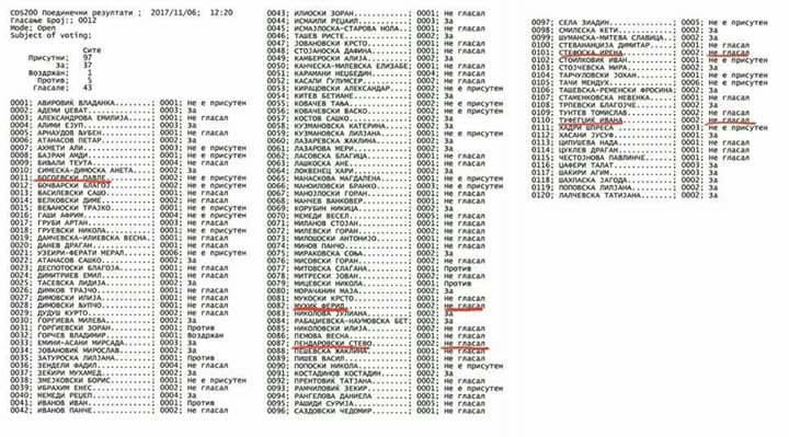 Според стенограмските собраниски снимки од четиринаесеттото продолжение на шестата седница за препораките за унапредредување на човековите права не гласале пратаниците на СДСМ Ивана Туфегџиќ, Ферид Мухиќ, Стево Пендаровски, како и координаторот на пратеничката група, Томислав Тунтев. Според собранискиот материјал, Павле Богоевски не бил присутен во салата, па и тој немал можност да гласа.