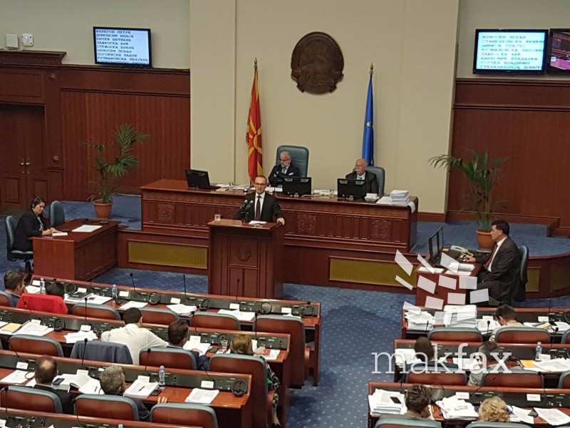 По говорот на Димовски, пратениците на ВМРО-ДПМНЕ во знак на протест удираа по собраниските клупи.