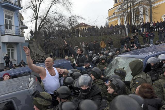 Десетина припадници на украинската полиција утрово влегле во еден од шаторите во обид да го приведат Саакашвили. Подоцна Саакашвили рекол дека полицијата претресла погрешен шатор.