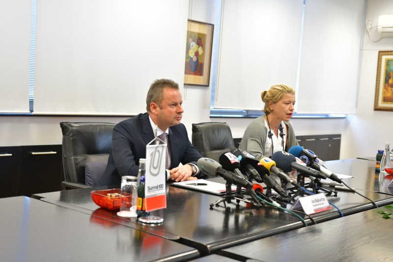 На прес-конференцијата претседателот на УО на „Самит 100“ и генерален директор на „Алкалоид“, Живко Мукаетов, и програмскиот директор на „Самит 100“ и партнер во „Алба партнери“, Јелена Радуловиќ, најавија дека Скопје и Република Македонија преку уникатната регионална бизнис-платформа „Самит 100“ ќе бидат домаќини на повеќе од сто реномирани бизнис-лидери и највисоки политички претставници од Југоисточна Европа, кои во текот на двата дена ќе дискутираат за потенцијалите и можностите на регионот како целина.