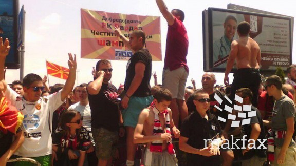 Масовен собир за пречек на ракометарите на РК Вардар.