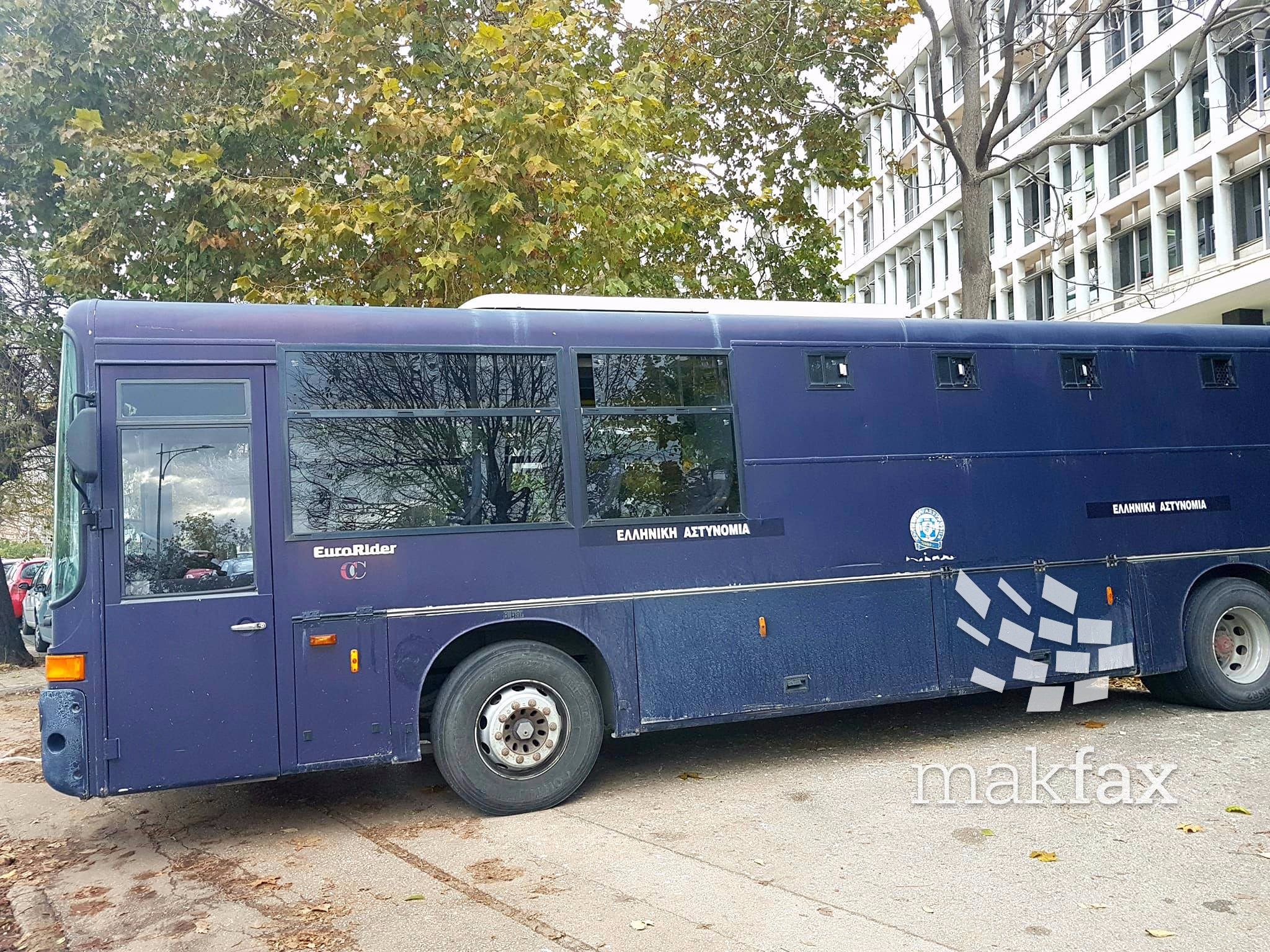 Ексразузнавачите во тренерки и капути и со лисици на рацете беа донесени во придружба на полиција. На минатото судење имаше овластен судски преведувач, кој ги преведуваше прашањата на судијката, а беа присутни грчка адвокатка и адвокатот од Скопје, Петар Василев. Адвокатите за „Макфакс“ изјавија дека ќе бидат подготвени за денешното рочиште.