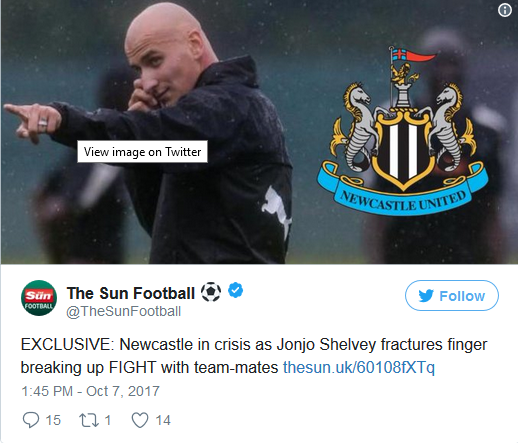 Анлиските медиуми објавија дека на денешниот тренинг на фудбалерите на Њукасл Јунајтед се дошло до тепачка помеѓу двајца играчи.
