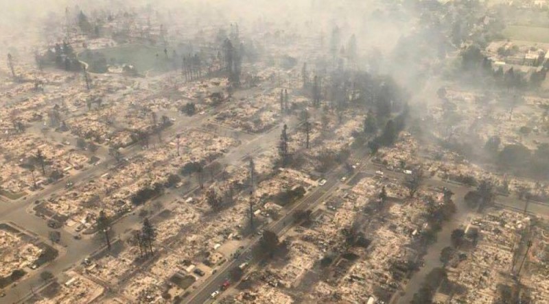 Северно од Сан Франциско огновите целосно ги уништија куќите во неколку населби. Во Санта Роса огромна штета претрпе и хотелот „Хилтон“, а уништен е и мобилен забавен парк.