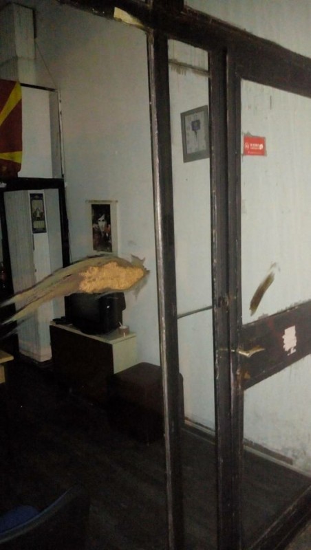 (ФОТО) Оштетен штаб на СДСМ во Аеродром