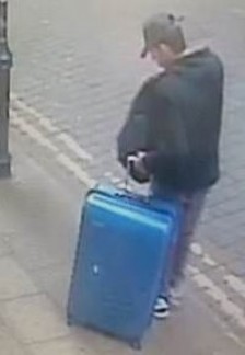 На сликата е маж, облечен во темна кратка јакна и сива бејзбол капа, која влече голем син куфер на четири тркала. Од полицијата велат дека за време на нападот Абеди не бил со овој куфер.