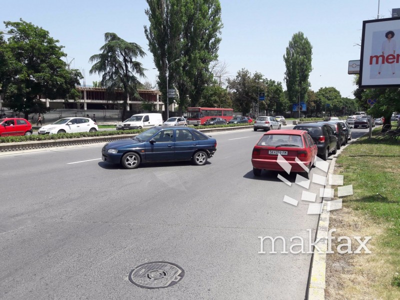 Триесетина поддржувачи на опозициската ВМРО-ДПМНЕ со автомобили ја блокираа улицата пред кривичниот суд.