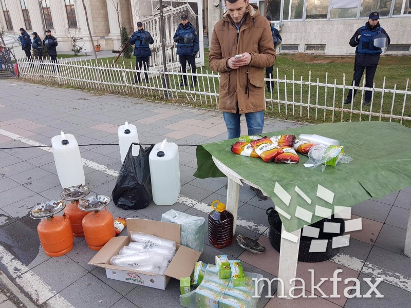 Шеќер, зелен чај, големо тенџере и плински боци беа донесени пред кривичниот суд, каде што протестираат симпатизерите на ВМРО-ДПМНЕ.