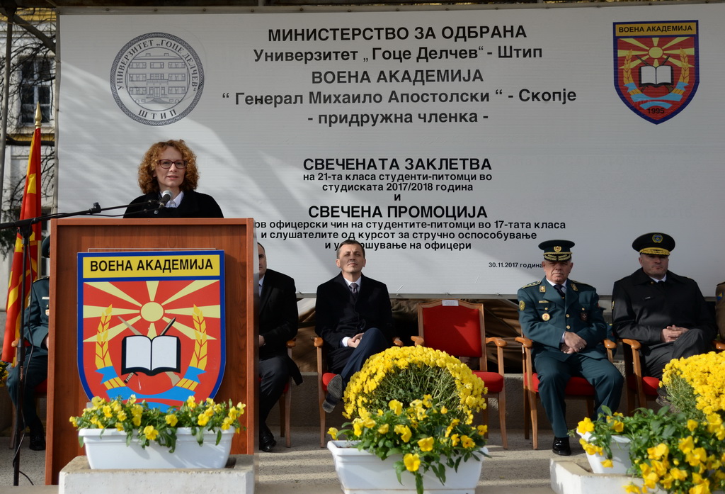 Министрите потоа во касарната „Гоце Делчев“ учествуваа на свечената заклетва и промоцијата на потпоручници на Воената академија. На свеченоста заклетва дадоа 32 новопримени питомци, од кои 23 од Македонија, пет од БиХ, двајца од Црна Гора и двајца од Косово, а во чин потпоручник беа промовирани 22 питомци од Македонија, по двајца од Црна Гора и Косово и еден од БиХ. На свеченоста во почетен офицерски чин беа промовирани и 41 слушател со завршен стручен курс за оспособување и усовршување.