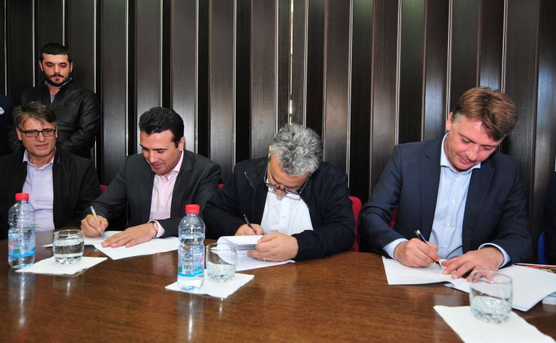 Шилегов заедно со претседателот на СДСМ, Зоран Заев, потпиша договор со еснафот на Старата скопска чаршија.